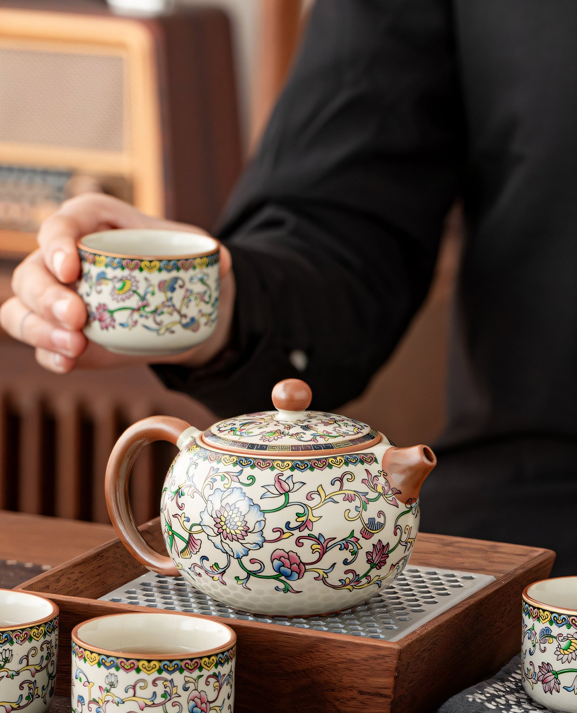 Daoist Alchemy: Yixing zisha’s iron-rich clay chemically bonds with tea oils, embodying the philosophy of "man and nature as one" (天人合一).