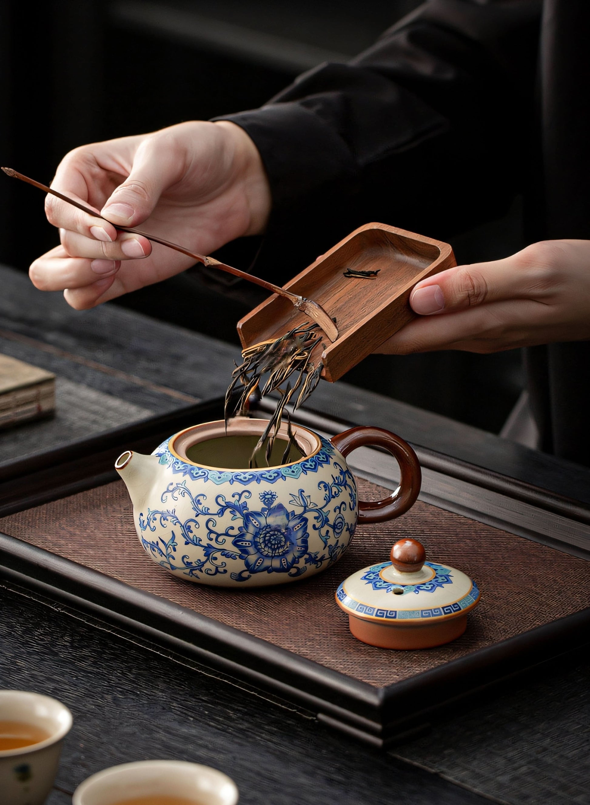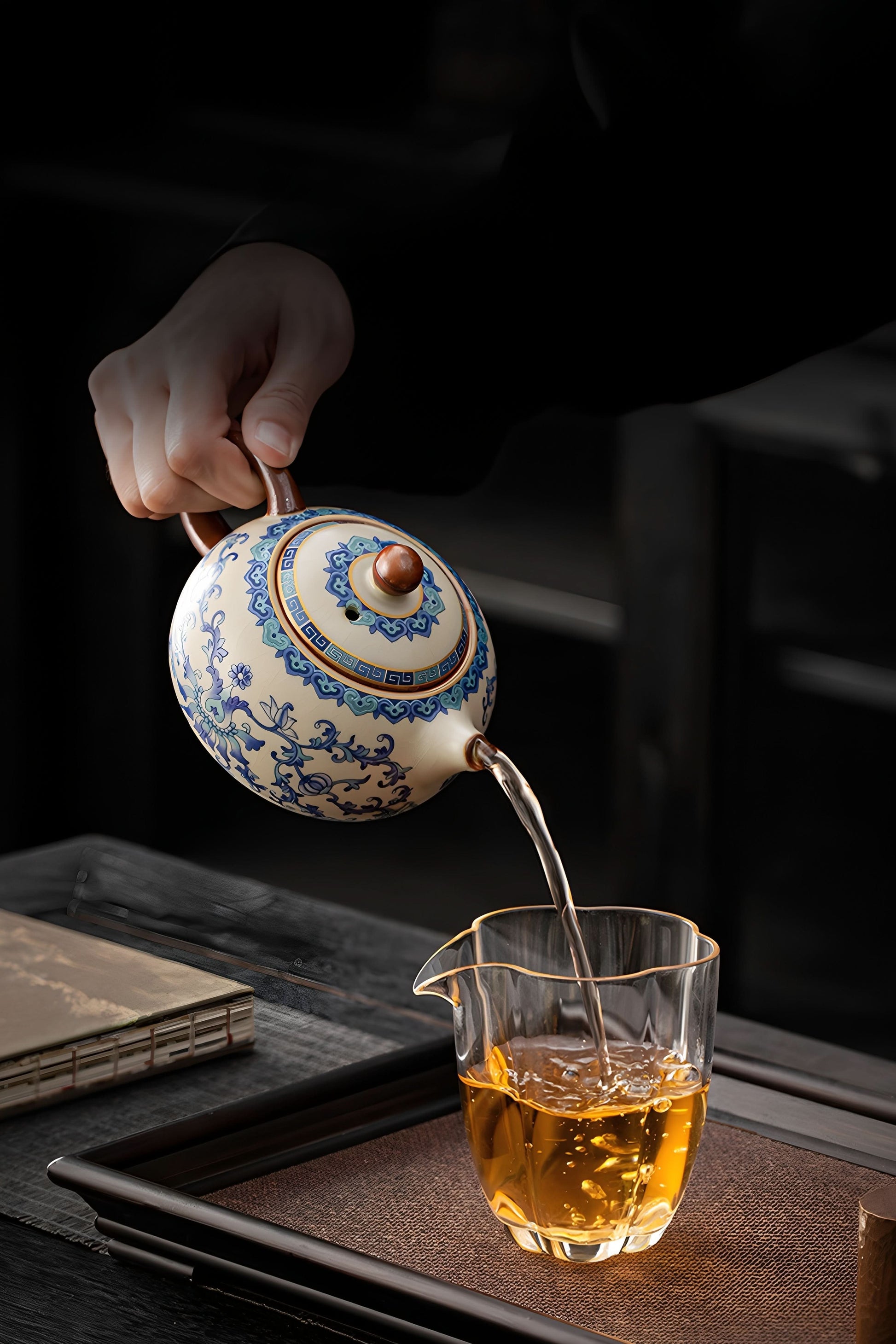 Ming Dynasty Revolution (1368–1644): Jingdezhen artisans perfected cobalt-blue underglaze, painting peony motifs that bled like ink on paper when steeped, merging painting and pottery.