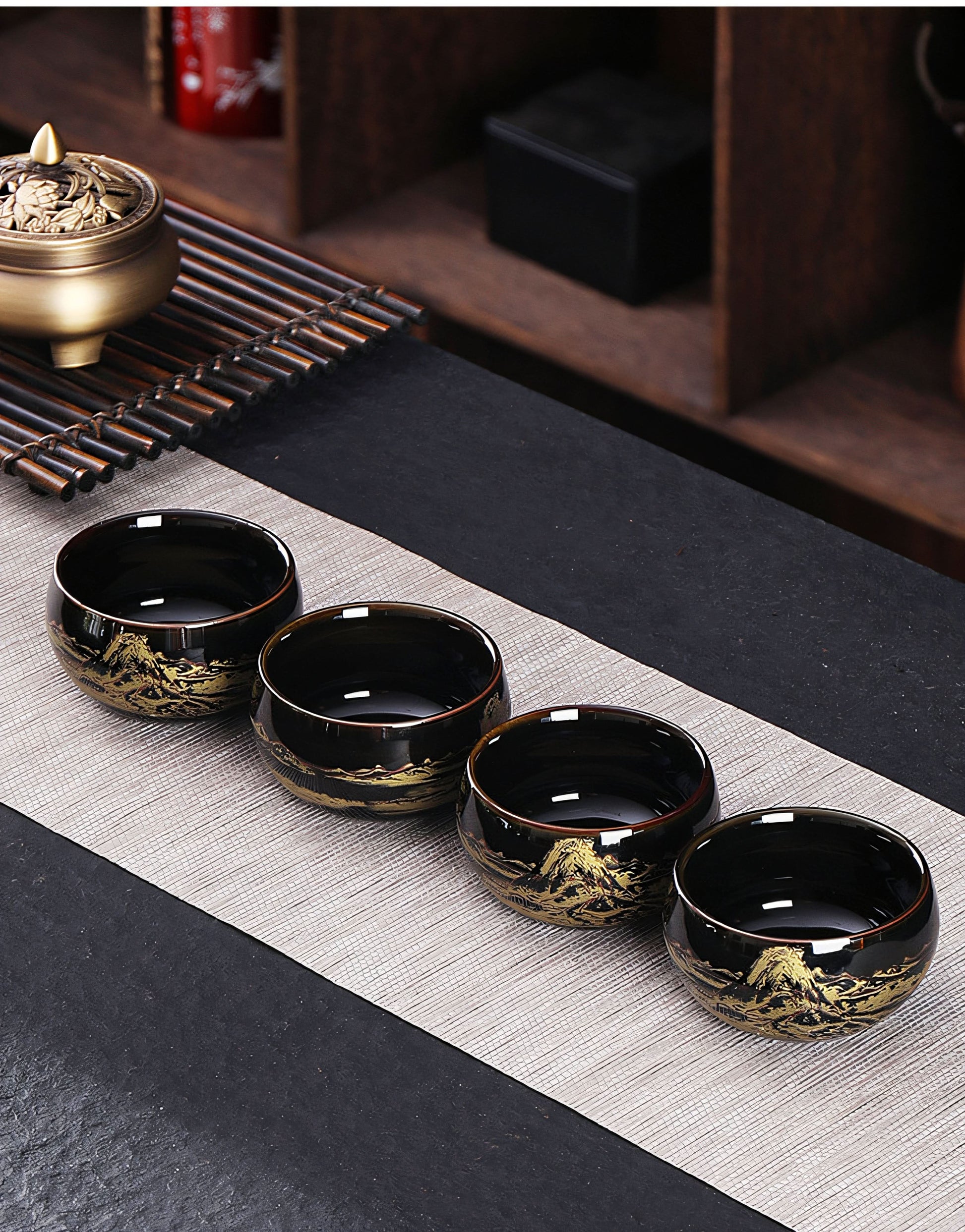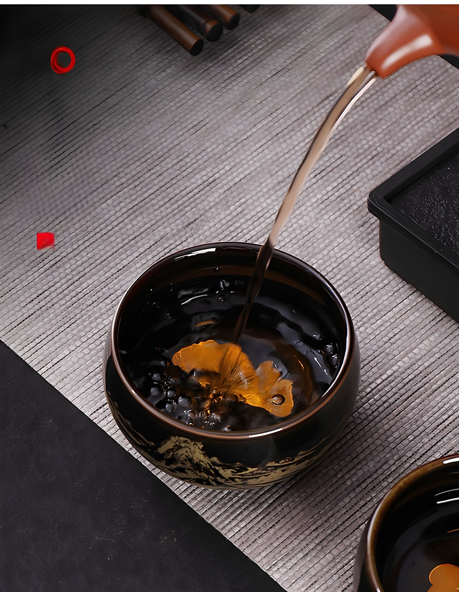 Jian Zhan, the iconic black-glazed tea bowl of the Song Dynasty (960–1279), originated from Jianyang, Fujian, and was named after the Jian Kiln. Flourishing alongside the ancient Chinese tea contest culture, its history dates back to the late Tang Dynasty. Known for its profound glaze resembling ink and mesmerizing patterns—such as "Hare's Fur" (fine silvery streaks), "Oil Spot" (metallic speckles), and "Yohen" (cosmic iridescence)—it is hailed as the "art of earth and fire". Emperor Huizong of Song praised Jian Zhan in his Treatise on Tea for its ability to contrast the whiteness of tea foam, while its thick body retained heat perfectly, embodying both utility and Song aesthetics.