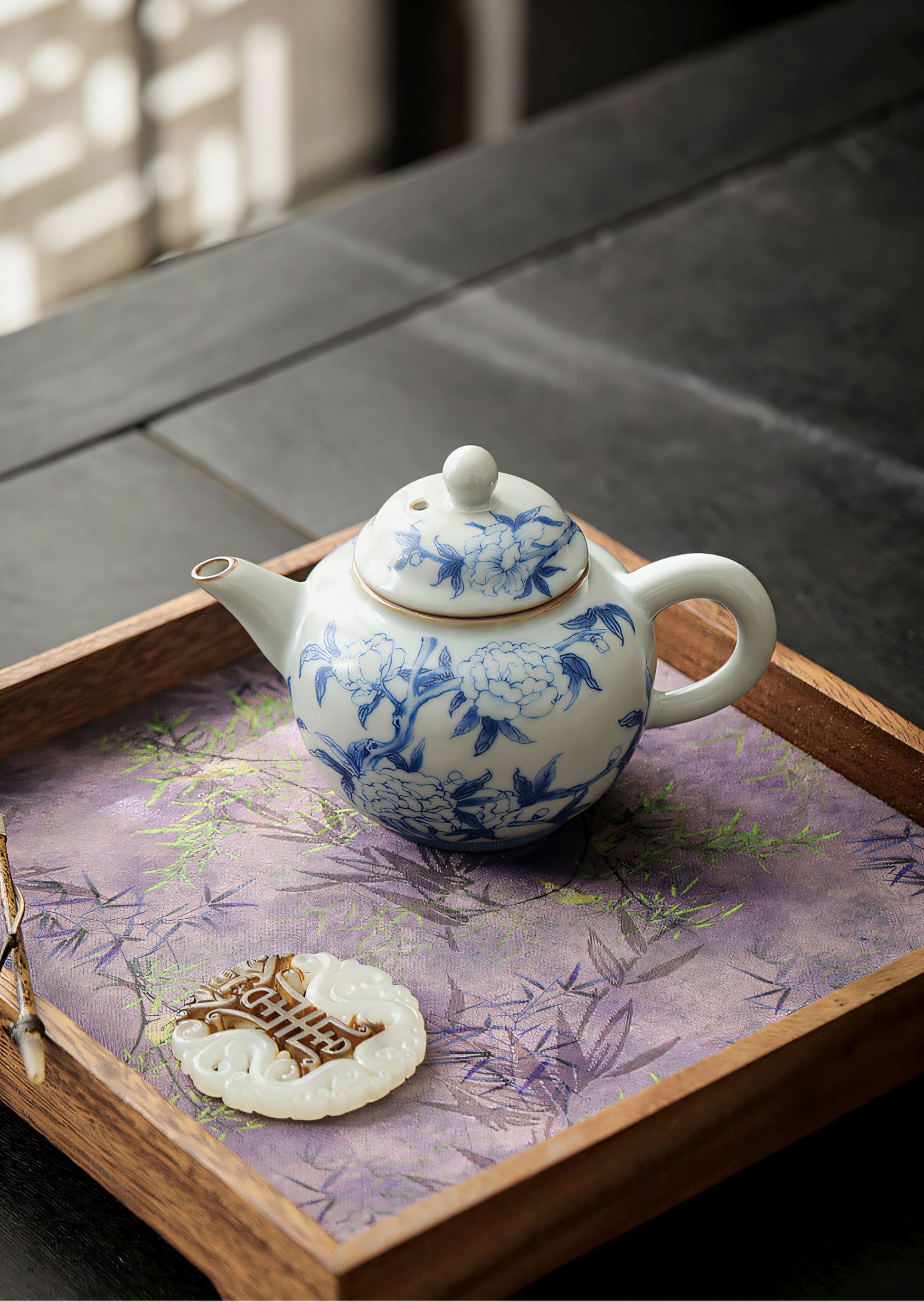 Ming Dynasty Revolution (1368–1644): Jingdezhen artisans perfected cobalt-blue underglaze, painting peony motifs that bled like ink on paper when steeped, merging painting and pottery.